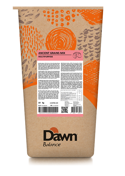 DAWN ANCIENT GRAINS - celozrnný mix s quinoa je směs vyroběná ze tří druhů zrn - pšenice, špaldy a pohanky s obsahem semínek quinoa a nižším obsahem cukru v porovnání s jinými směsmi pro přípravu litých těst.