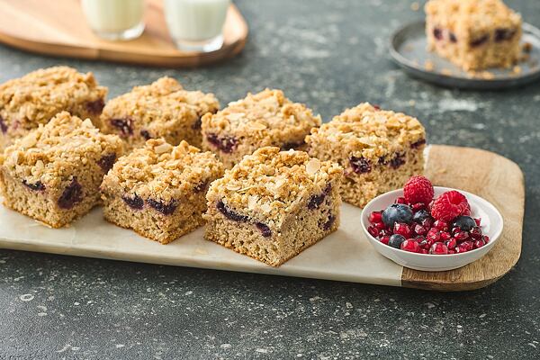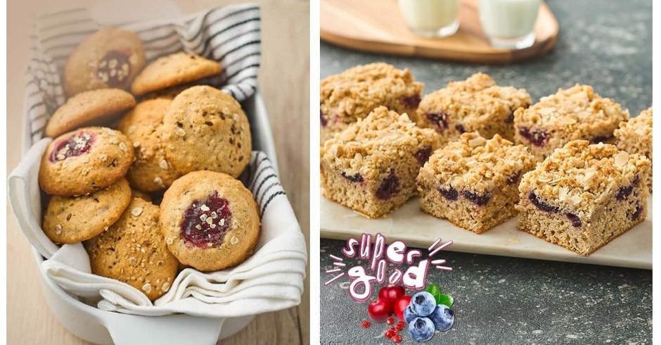 Tu sú dva recepty z tejto celozrnnej zmesi. Lahodné plátky zo starých obilnín s výraznou Superfruit náplňou a vlhké minipiškóty so Superfruit náplňou
