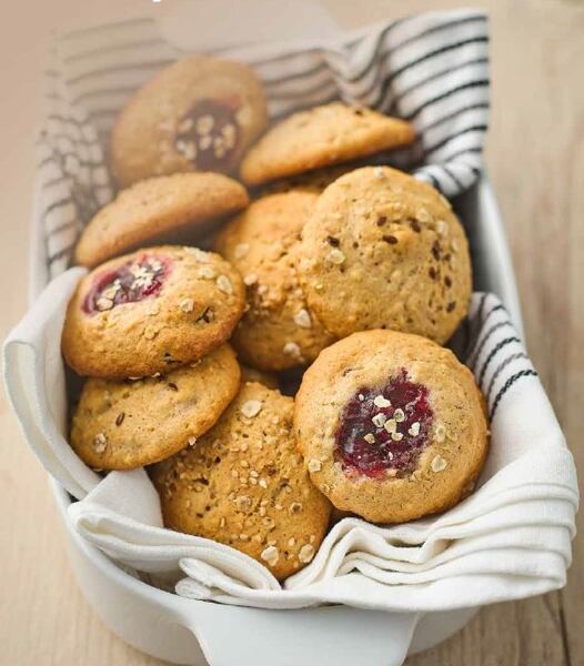 Další ze zajímavých receptur na vláčné sušenky / čajové pečivo / cookies z odvěkých zrn vyrobené z Dawn Ancient Grains celozrnné směsi. Podobně jako u řezů se skvěle doplňují v kontrastní chuti se Superfruit náplní.