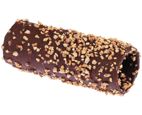 Oblátková trubička s čokoládovou polevou, sypaná.