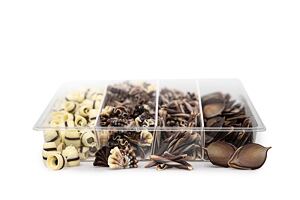 Spojením několika druhů dekorací v menším počtu vznikají praktická balení Assortment box. Kvalitní dekorace z belgické čokolády v jednom balení s možností volby Vám poskytne ještě více inspirace k Vašemu tvoření.