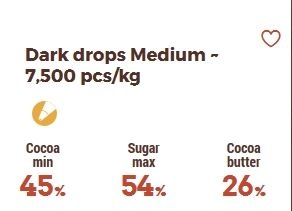 Čokoládové kúsky 45 % /dropsy, kvapky/ špeciálne navrhnuté do cesta.
