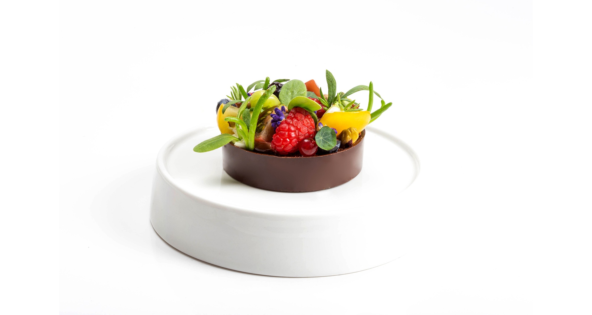 Čokoládový košíček „tartelette“ z tmavej belgickej čokolády.