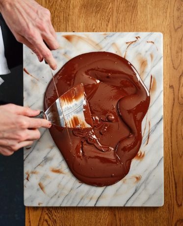 Tmavá, jemná belgická gourmet couverture čokoláda.