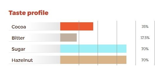 Excelentná nugátová čokoláda podľa tradičnej talianskej receptúry, charakterizovaná vysokým podielom lieskových orieškov (24 %) a kakaovej pasty. Bez pridaného mlieka.