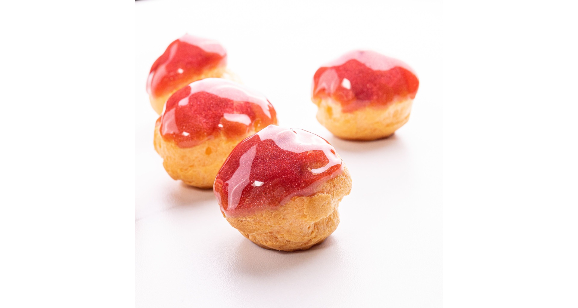 Lesklá glazúra – zrkadlová poleva na torty, dezerty a donuts. Jedinečná rubínová farba s výrazným perleťovým efektom. Jemná ovocná chuť.