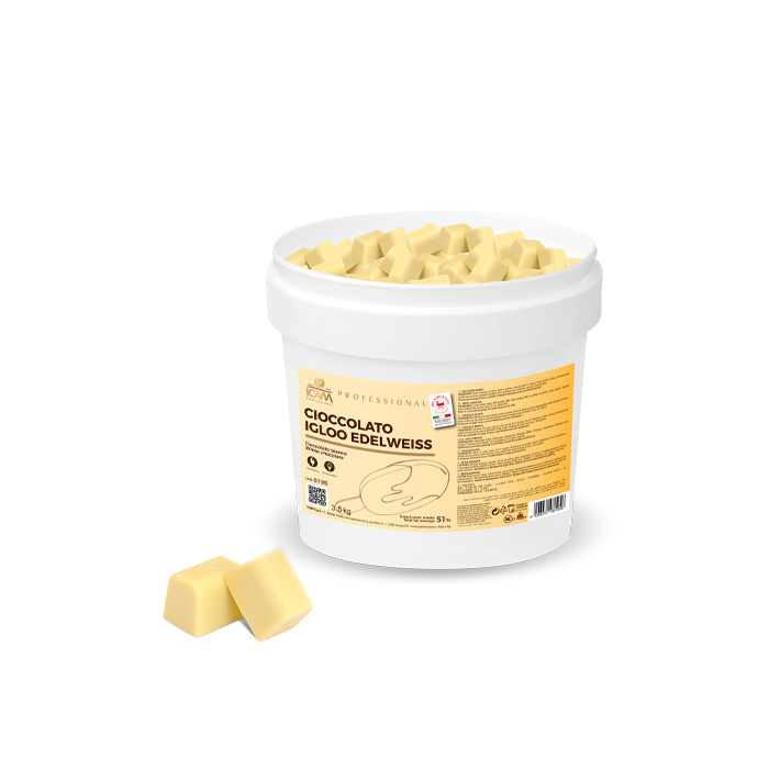 Vyvážená chuť mlieka a vanilky čokolády Igloo Edelweiss nabáda na použitie v kombinácii so širokou škálou nanukov a semifredd.