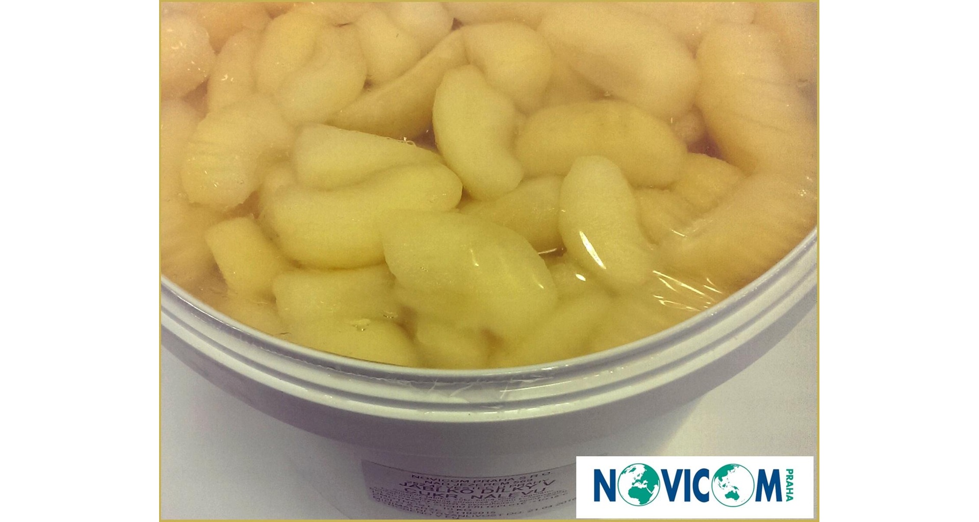 Jablkové dieliky – jablká bez jadrovníka rozdelené na osminky na uľahčenie prípravy širokého spektra pekárenských a cukrárenských výrobkov. Termostabilné. Balené vákuovo v 12 kg vedre.