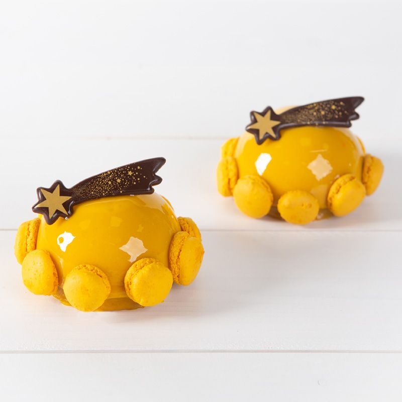 Kométa z belgickej čokolády so zlatou farbou. Rozmer: 6,8 x 2 cm