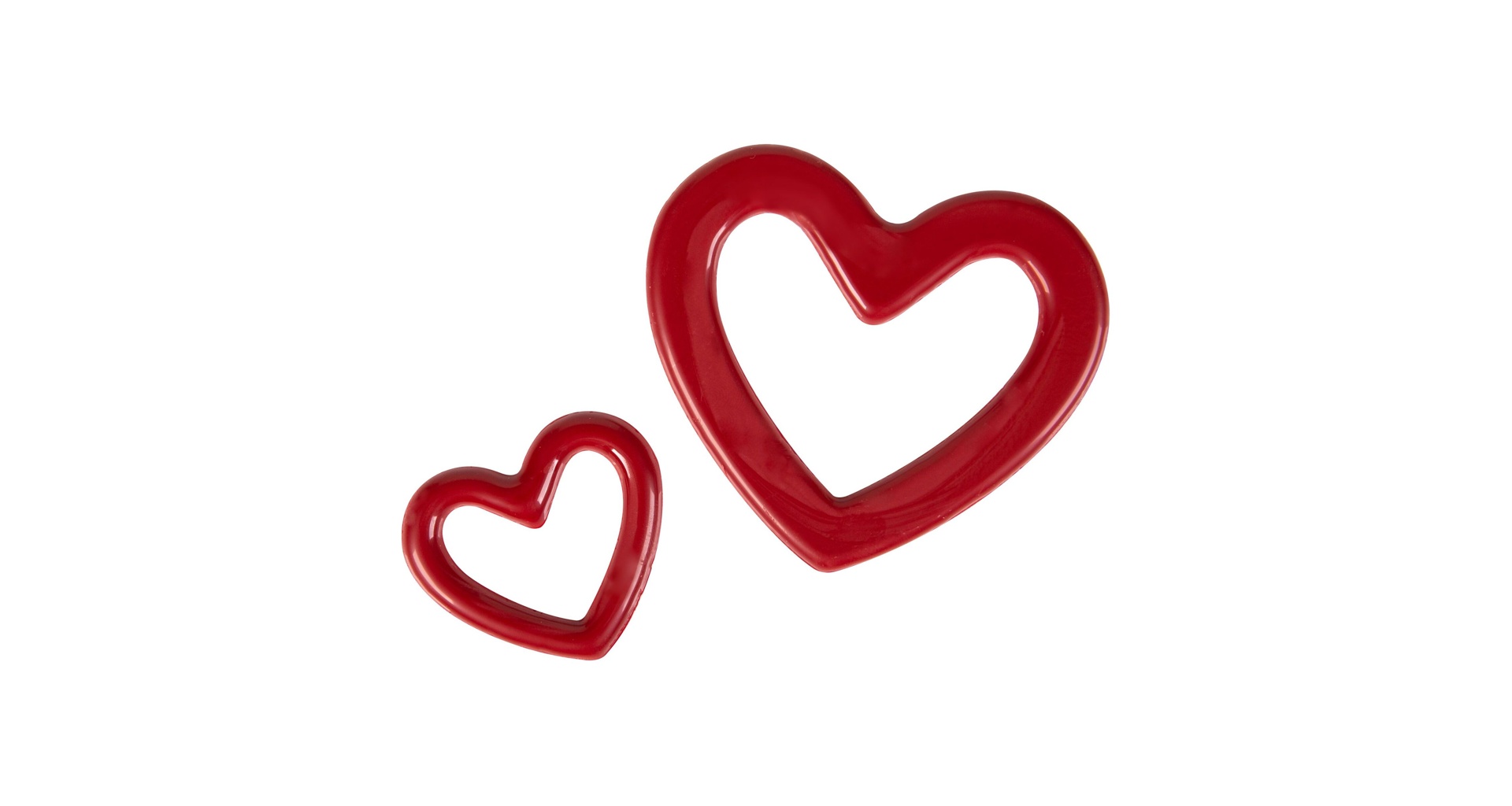 Elegantné otvorené srdce tmavo červené z belgickej čokolády v dvoch rozmeroch: 4 cm a 6,5 cm