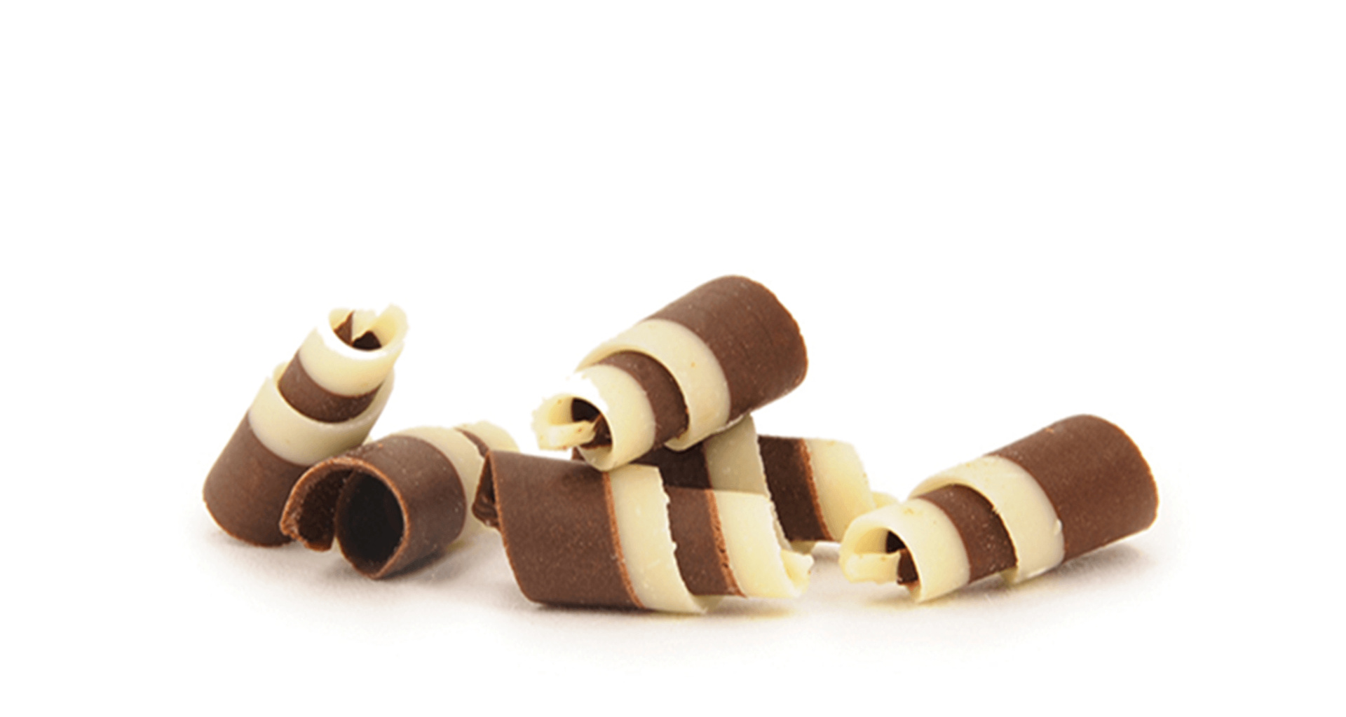 Rolované hobliny – rolky pruhované z mliečnej a bielej belgickej čokolády.