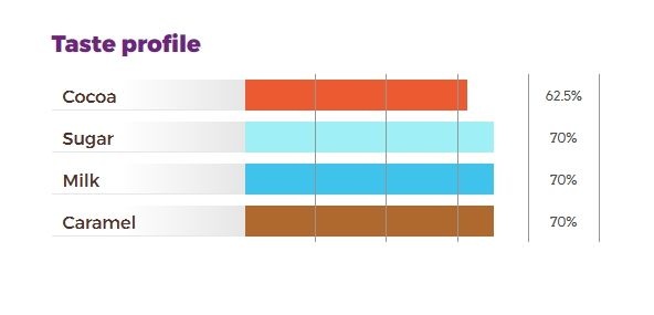Intenzívna a jemná kakaová aróma predchádza postupne sa rozvíjajúcej chuti mlieka. Spoločne táto kombinácia rozvinie nezabudnuteľný dojem z intenzívnej, kakaovej mliečnej čokolády s odtieňmi kávy, vanilky, delikátneho ovocia.