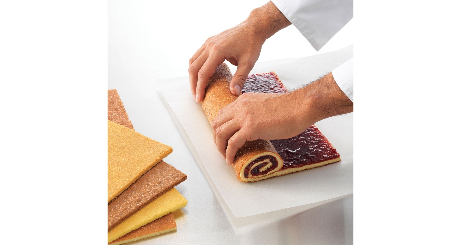Vláčny francúzsky piškótový plát pripravený na univerzálne použitie aj na rolády. Výška: 8 mm