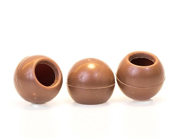 Škrupiny na pralinky z mliečnej belgickej čokolády. Pripravené na plnenie. Rozmer: ø 25 mm