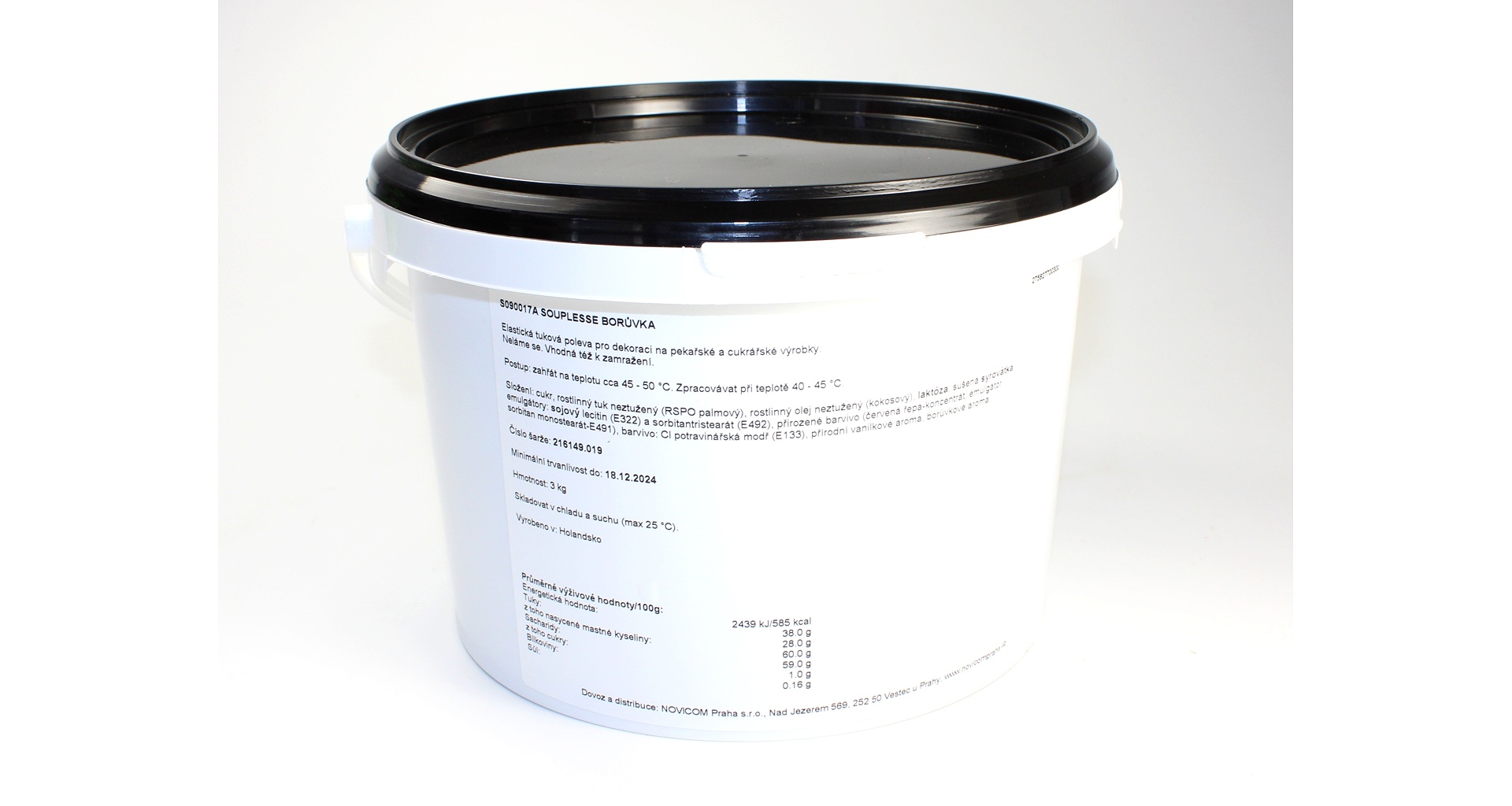 Elastická tuková poleva s príchuťou a sýtou farbou čučoriedok. Obľúbený rad poliev Souplesse pre univerzálne použitie v pekárskom, cukrárskom aj gastro odvetví. Na cukroviny, torty, pečivo. Obľúbená aj na Donuts – perfektne drží aj ďalšie posypové dekorácie.