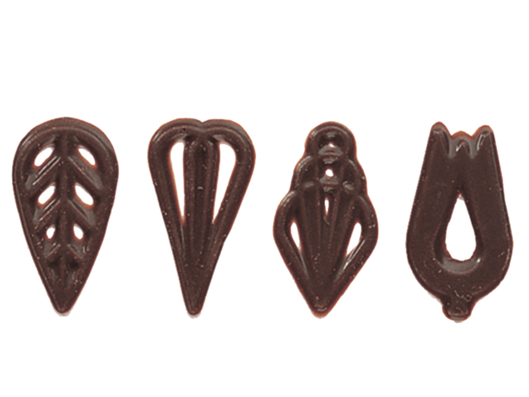 Zmes filigránov z tmavej belgickej čokolády. 4 motívy. Rozmer: 40 mm