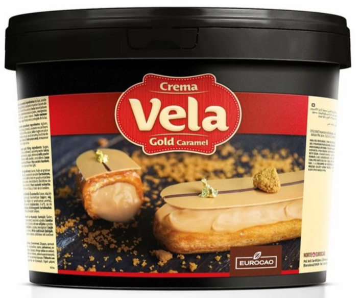 Vela karamel Gold je vynikajúci a chuťovo perfektne vyvážený hotový roztierateľný krém s karamelom a dlhotrvajúcim dozvukom. Vďaka podielu mlieka je chuťovo jemný a skvele spracovateľný.