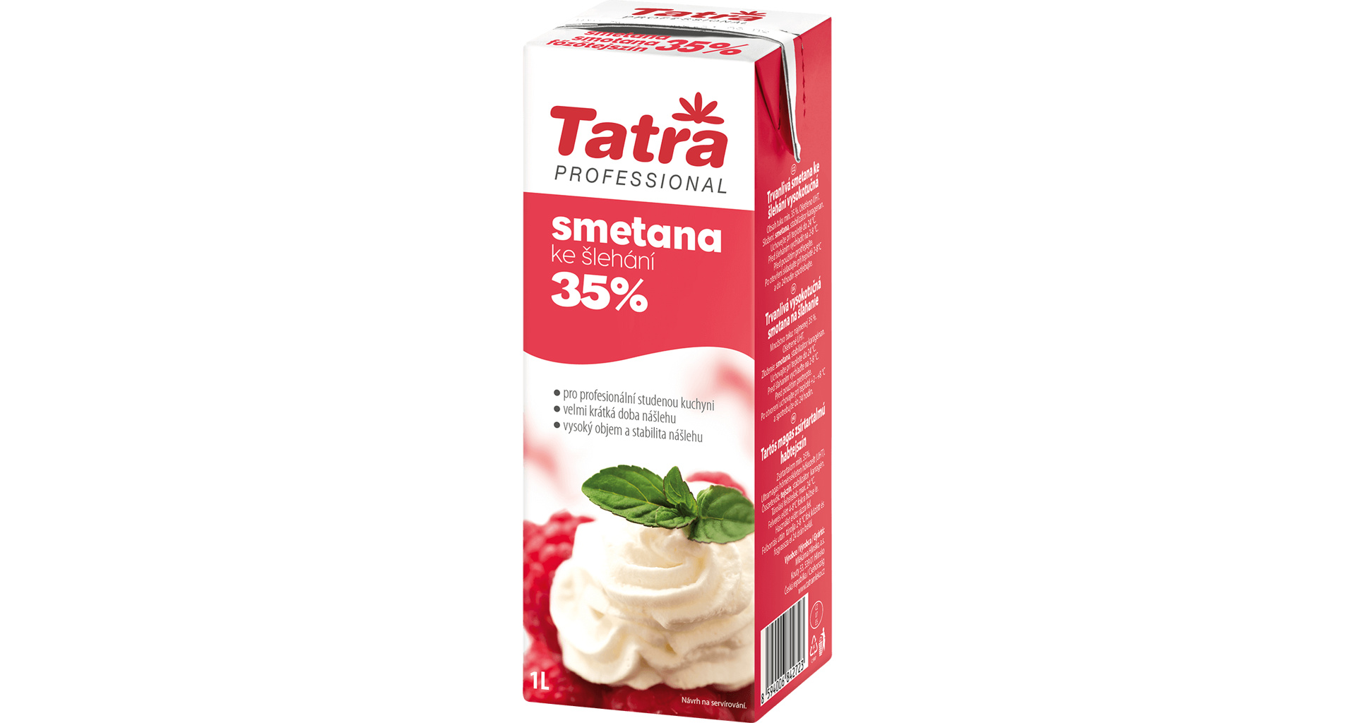 Živočíšna smotana s min. 35 % zľava. UHT. Vynikajúci nášľah. Balenie: 6 x 1 l (tetrapack)