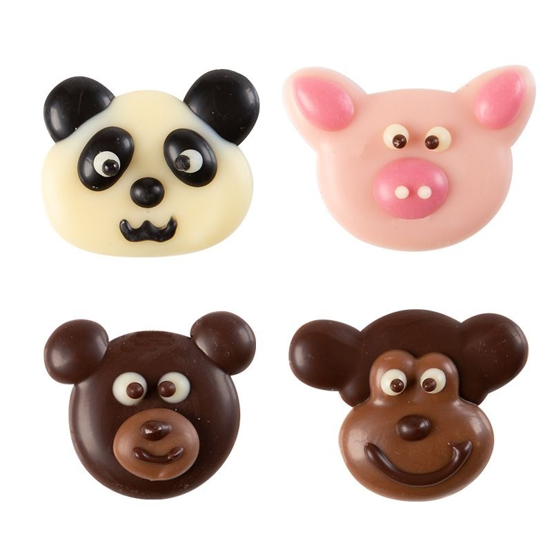 Veselé dekorácie zvieratiek z belgickej čokolády.